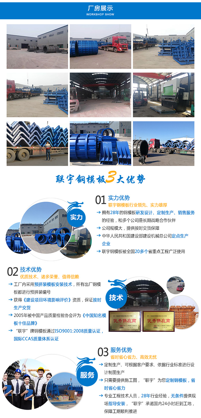 鋼板的厚度有4mm,5mm,6mm,而選用多厚的鋼板要根據(jù)圓柱直徑大小、一次澆筑高度以及周轉(zhuǎn)次數(shù)來確定。這樣,達到了客戶需求,保證了鋼模板質(zhì)量,更重要的是保證了工程的質(zhì)量,同時給客戶節(jié)約了成本,以少的投入獲得大的回報。